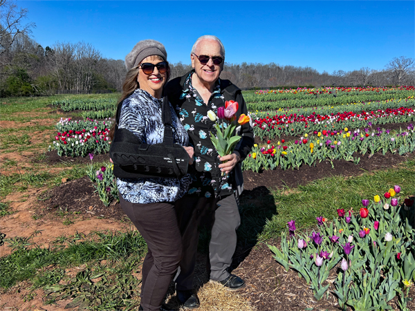 the tulips because Karen's arm was still in a sling. |