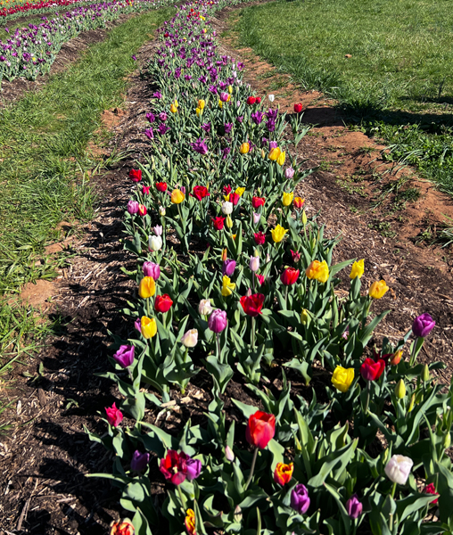 Below: Time to explore the rows of tulips.
