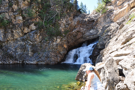 | Below: As the two RV Gypsies approached the falls, a dude was jumping into the water, nude. When he saw the two RV Gypsies, he put on his jeans. | |