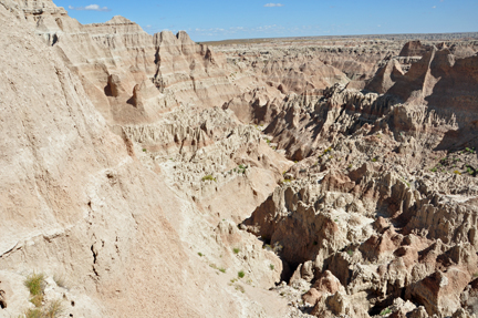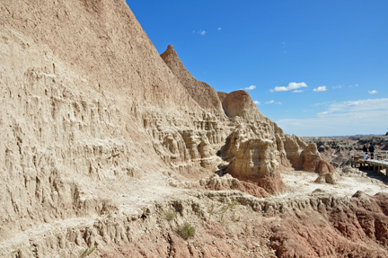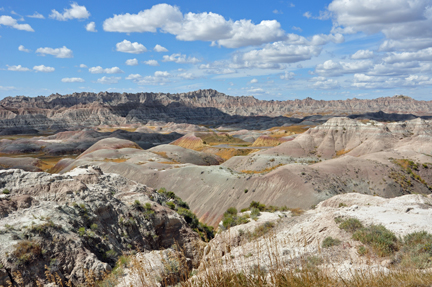 | Badlands National Park is an American National Park located in southwestern South Dakota, It is 381 square miles or 243,000 acres. The highest point in the park is 3,247 feet, located at the Pinnacles Entrance Station. The average annual precipitation is 16 inches. Badlands National Park is located in the White River Badlands and was called mako sica (mako, land and sica, bad) by the Sioux Indians. The term badlands generally refers to an area that is difficult to travel through primarily because of the rugged terrain and lack of water. The fascinating landscape within the park erodes at a rate of about 1 inch per year, providing an ever-changing landscape. Badlands was originally proclaimed a National Monument in 1939 and was later designated a National Park in 1978. The average visit to the park is only 1 - 2 hours in length as visitors detour from nearby I-90. However, there are enough activities and sites to occupy visitors for several days to a week. |