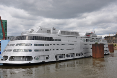 Below: 1987 photos- McDonald's floating boat restaurant and The City of St. Louis, plus the Tow Boat Riverfront Cafe |