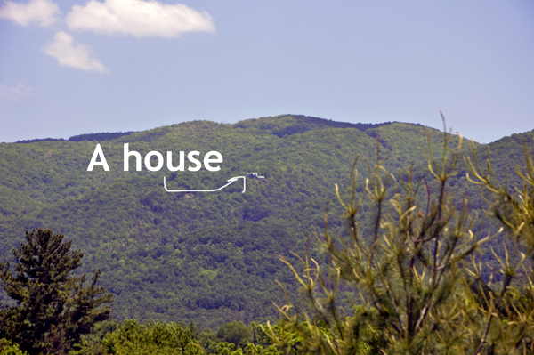 Below: The two RV Gypsies also noticed one lone house way up on the mountain in front of them. |