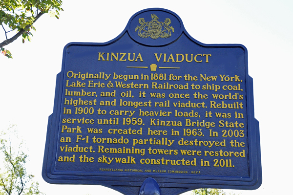 The Kinzua Viaduct was placed on the National Register of Historic Places in 1977, and the National Register of Historic Civil Engineering Landmarks in 1982. |