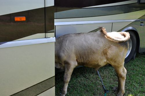 the RV slideout so the two RV Gypsies went outside to see what the cow