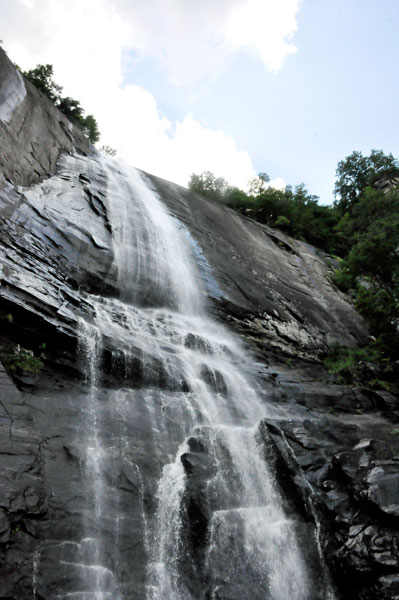 After leaving Hickory Nut Falls, the two RV Gypsies and family drove their cars into Chimney Rock Village and ate at The Old Rock Cafe. Then they took a brief walk behind the cafe to view the river. |