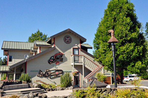 Below: A 5-foot Welcome figure was installed outside the tribe's community center. Dale Faulstich has created more than 30 totem poles for Jamestown S'Klallam tribe facilities over nearly 20 years. |