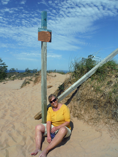 saved energy by taking breaks while on the Dunes Trail to Lake Michigan.