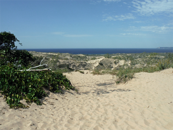 sand changed and there lots of prickly tufts of vegetation, so Karen