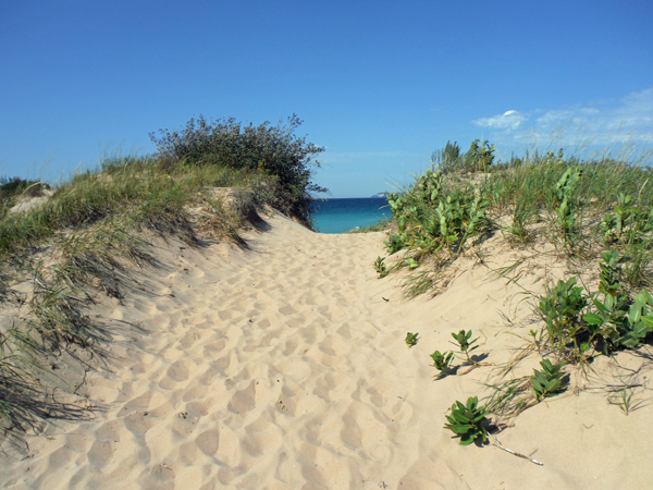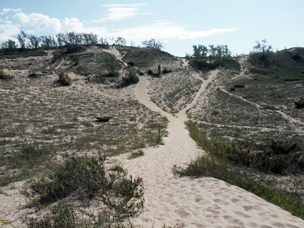 an hour's hike to the steep bluffs 400 feet above Lake Michigan, but