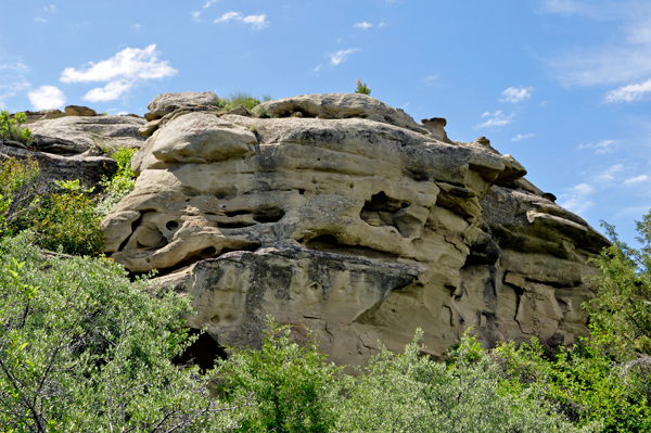 Pompeys Pillar National Monument is a massive sandstone outcrop that rises from an almost 2-acre base on the banks of the Yellowstone River 150 feet toward Montana's Big Sky, east of Billings. The monument's premier location at a natural ford in the Yellowstone River, and its geologic distinction as the only major sandstone formation in the area, have made Pompeys Pillar a celebrated landmark and outstanding observation point. On this date, there was a fee of $7 per vehicle. |