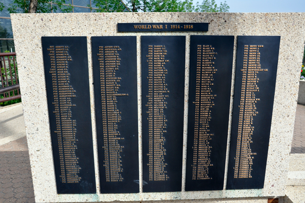 Below: The War Memorial, complete with a burning torch, honors the memory of those citizens of Edmonton who gave their lives in World War I, and World War II. |