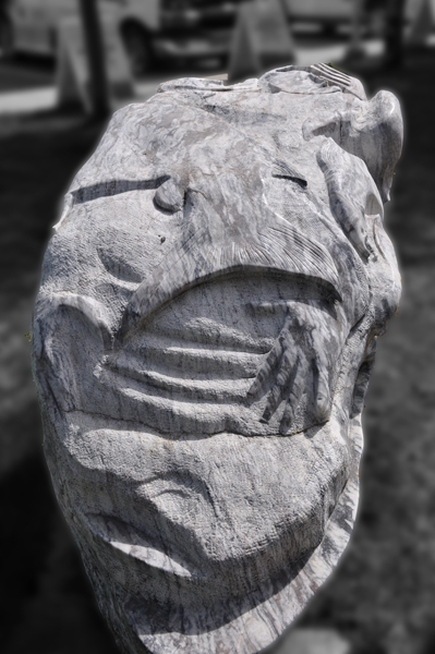 Below: Healing Totem Pole in downtown Whitehorse. Each wood chip from the totem’s carving represents a life affected by residential school. The wood chips have been signed by former students, family and friends of those that have died. Ashes were put inside the box and sealed into the totem and by that act all those children are being sent back to their mom. |