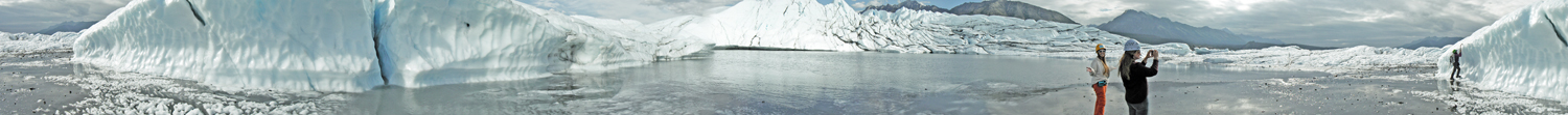 dramatic pools of water, weird shaped ice formations, the Chugach Mountains,