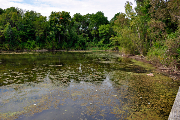 Ads and brochures state that this 17-acre nature study area contains two ponds, several nature trails, fishing pier/dock, and an extensive boardwalk system, plus fishing, picnicking, aquatic habitat exploration, and hiking and cross-country ski trails. However, several entrances the two RV Gypsies came to said that the park was closed. Then they found a small parking lot and a small pier. That was all. |