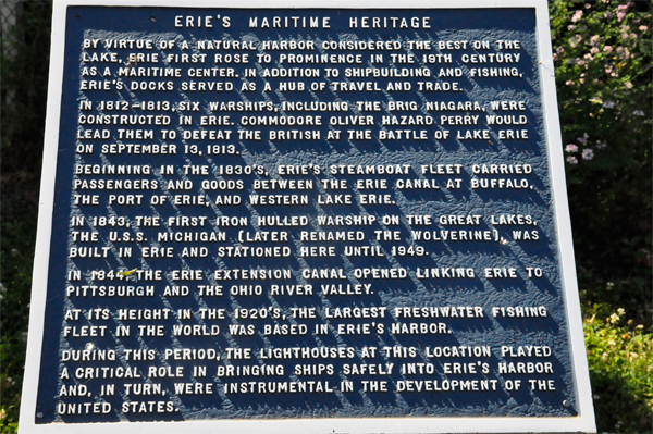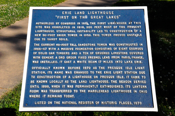 The light is a 1,000 foot walk from the parking lot, but it can be seen from the parking area. The location of the Erie Land Light is where one of the first two lighthouses were built along the Great Lakes. The first structure here was completed in1818. The current lighthouse is the third to stand on the site and dates back to 1867. It is only 48-feet tall. It is located on a bluff overlooking the lake, providing it with the ability to be seen from far out on the lake. Despite this, the light was decommissioned in 1880, though it was relit from 1884-1899. The original light is now on display at the Erie Maritime Museum. Although the Erie Land Light is no longer lit at night, and the inside is closed to the public, it is still a historic spot, and the two RV Gypsies enjoyed seeing the lighthouse. |