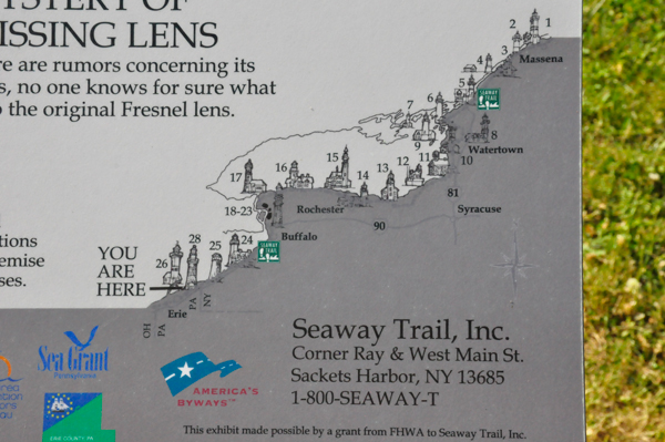 As Karen Duquette walked the path behind the lighthouse, she read and photographed several informative signs about Lighthouses. |