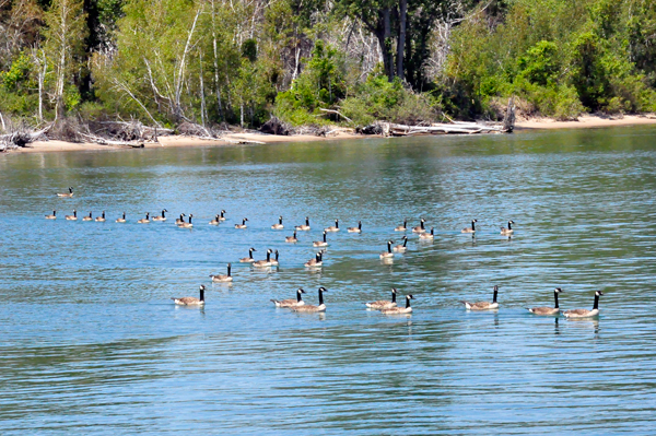 Below: The two RV Gypsies enjoyed watching the ships and geese. |