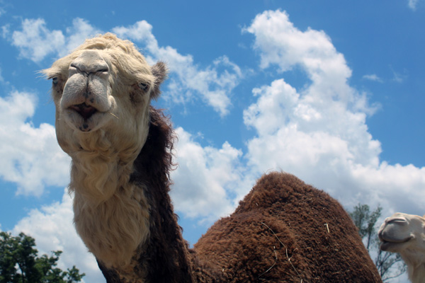 Below: The three camels got all tangled up together. It almost looks like there are only two camels, but look closely and your will see a third camel head. |