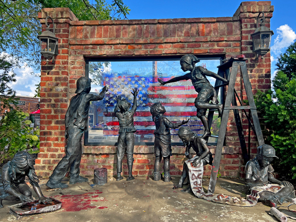in the Duluth, Georgia Town Green, there is a monument marking the