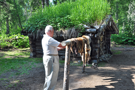 Next, the two RV Gypsies took a 1/4 mile leisurely nature walk through a Dena'ina Indian Encampment, a visit to an authentic trapper’s cabin with its original furnishings and a view of how trappers lived in "Bush" Alaska at the turn of the century. Plus a display of raw furs from the local area and a demonstration of trapping methods, and wildflowers and plants that grow in abundance along the river system and learned about the edible plants that were used by the Native Indians for cooking and medicines. | |