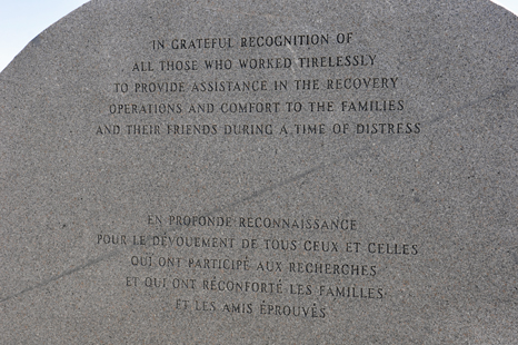 Swissair Flight III was on a scheduled airline flight from John F. Kennedy International Airport in New York City, USA to Cointrin International Airport in Geneva, Switzerland. On September 2, 1998 the aircraft crashed into the Atlantic Ocean southwest of Halifax International Airport at the entrance to St. Margarets Bay, Nova Scotia. The crash site was 5 miles from shore, between the tiny fishing and tourist communities of Peggy's Cove and Bayswater. All 229 people on board were killed. Its pilot reported smoke in the cockpit and attempted an emergency landing at Halifax International Airport. The two RV Gypsies visited the memorial site on September 3, 2011 - 13 years and 1 day after the date of the crash. |