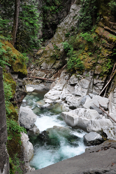 Below: The two RV Gypsies got a look at the raging Coquihalla River as they walked the path to the tunnels. |