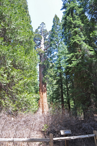| Below; The General Grant Sequoia tree is the second-tallest living thing on earth, standing over 267 feet tall with a 40 diameter and 107 circumference at its base. It is estimated to be between 1500 and 2000 years old. The General Grant Sequoia is both the Nations Christmas tree (as proclaimed by President Coolidge in 1926) and the only living National Shrine memorializing veterans who served in the US armed forces. | |