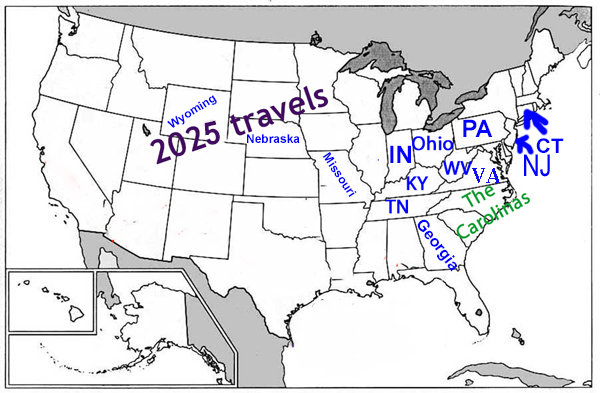 Karen and Lee Duquette did not go anyplace for New Years Eve 2024, so they welcomed in the New Year of 2025 by watching the ball drop on TV. This will most likely be normal in future years, since they do not have anyone to celebrate with.BELOW the four "Hello 2025" photos shown below, there is a list of all adventures in 2025. So scroll down and enjoy.If you are looking for a specific place, USA state, Country, adventure, or activity - use the TOC MENU and alphabetical category buttons at the BOTTOM of this and most other pages to search for whatever you wish to explore.SO NOW, Scroll down BELOW these first few photos to enjoy the 2025 adventures via the MENU and enjoy. A link to 2026 is at the bottom of this page, with whatever adventures Lee and Karen Duquette may have. |