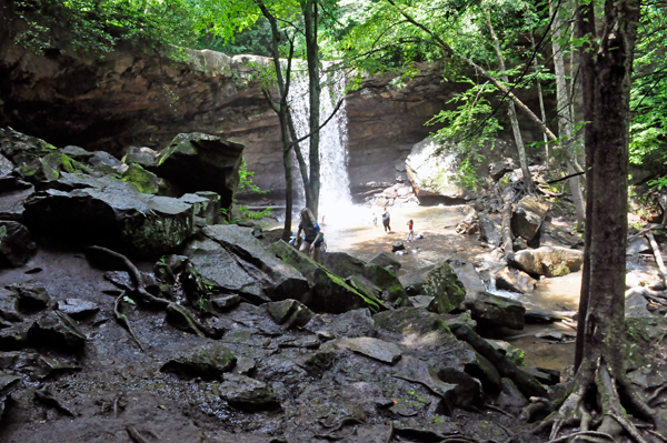 The two RV Gypsies watched people climb over the big boulders to get to the bottom of Cucumber Falls. But because Karen was not quite over having bronchitis, they decided not to attempt climbing down the rocks. |