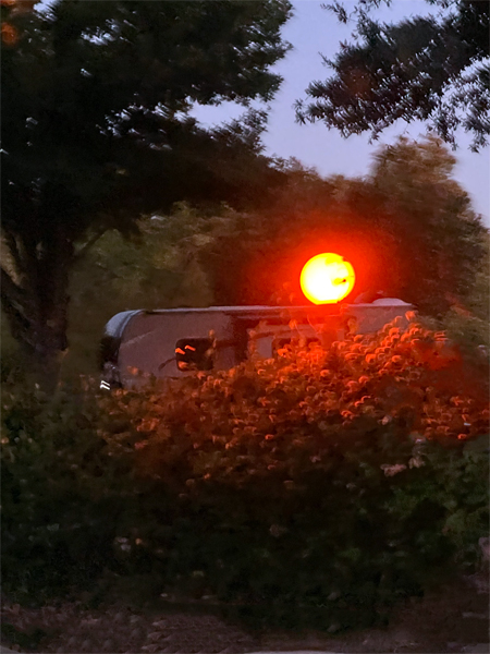 Below: The campground had colored pumpkin lights lit in the evening. |
